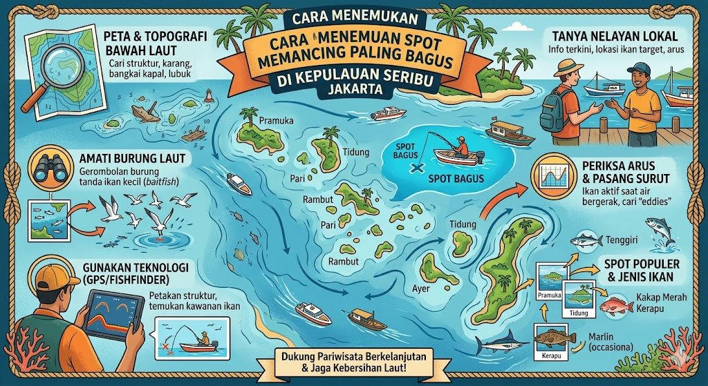 Kepulauan Seribu merupakan destinasi favorit bagi para pemancing di Jakarta karena aksesnya yang mudah dan keberagaman ekosistem lautnya. Dengan ratusan pulau yang tersebar di Teluk Jakarta, wilayah ini menawarkan berbagai titik potensial untuk mendapatkan tangkapan yang memuaskan. Namun, untuk menemukan titik yang benar-benar produktif, seorang pemancing memerlukan pengetahuan mendalam mengenai karakteristik perairan dan perilaku ikan di kawasan tersebut.